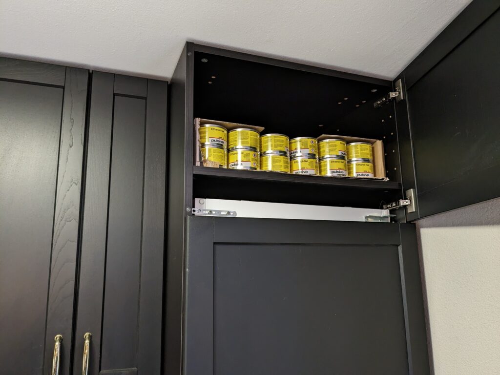 Im Fach über dem Kühlschrank finden Sie Brennpasten Dosen (jeweils mit ca. 3 Stunden Brenndauer) für den Gelkamin im Wohnraum. Die Brennpasen können Sie für 4,00 EUR für je 3 Dosen erwerben. Die Zahlung ist per PayPal (neben dem Smart-Tablet finden Sie einen entsprechenden Aufsteller mit einem PayPal QR-Code für die Bezahlung), oder durch den Einwurf von Bargeld in eine Spardose (neben der Brennpaste) möglich.