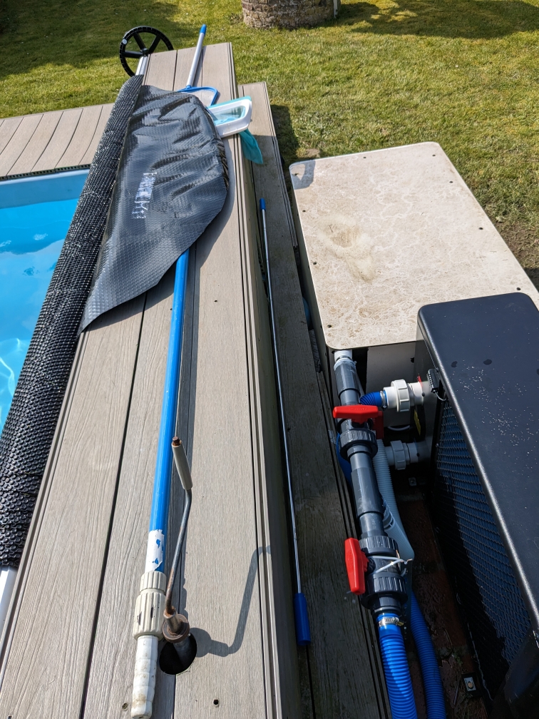 Für die Beseitigung von gröberem Schmutz stehen Ihnen neben dem Pool (auf der Einhausung der Poolabdeckung) zwei Kescher zur Schmutzbeseitigung zur Verfügung. Darüber hinaus haben wir im Waschraum (erste rechte Tür nach der Eingangstür) einen Poolsauger platziert. Diesen können Sie bei Bedarf gerne nutzen.